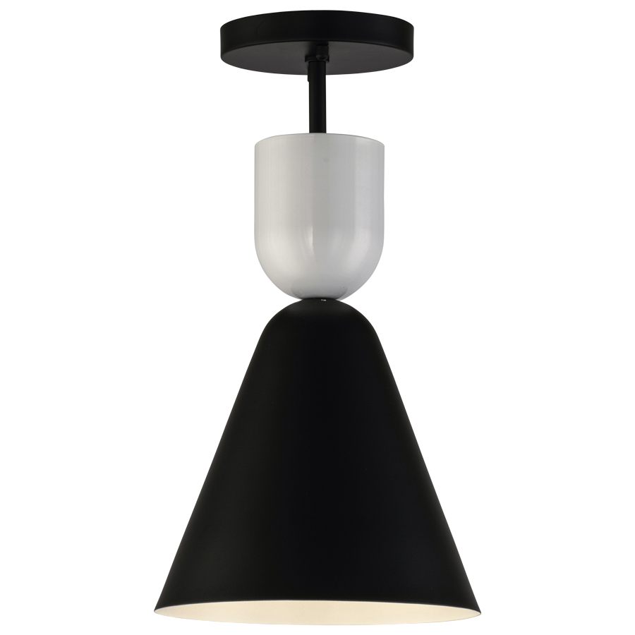8.25" diameter Powder Coat Matte Black and Glossy White Integrated LED Pendant, 15 watt, 1500 lumen, 2700K, 90CRI, 120V AC, direct wired, 15" overall height