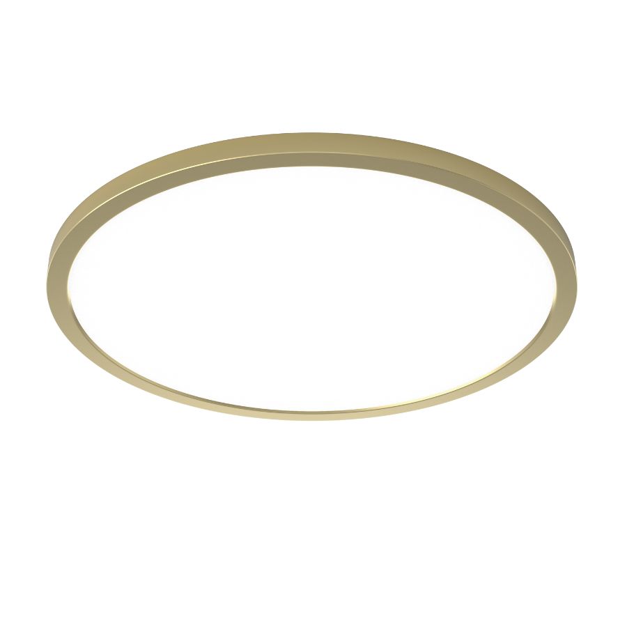 15" Round surface Mounted edge lit Slim flush Mount, Painted Brass finish, 30 watt LED, 120-277V, 2400 lumen, direct wired, 30K Single CCT, with diffuser