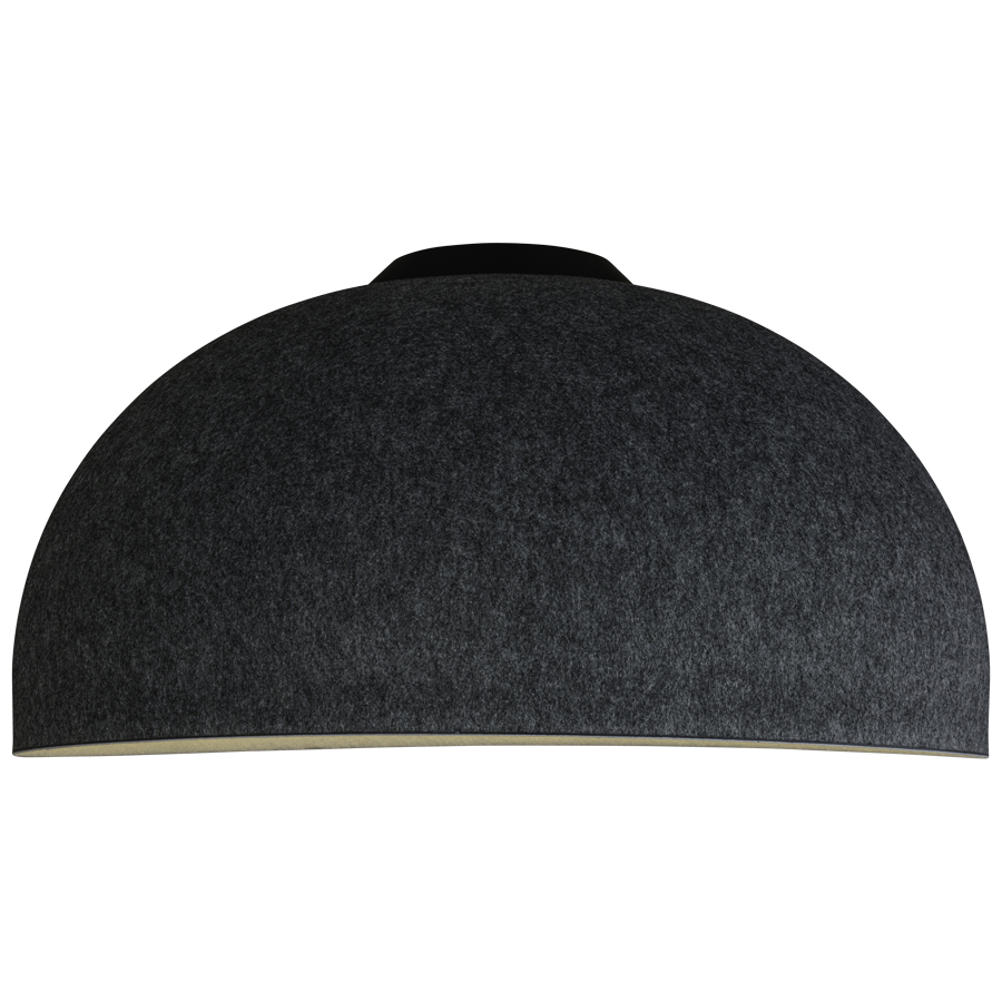 31.5" diameter x 15.75"H Dark Grey Flame Retardant Acoustic Integrated LED Pendant with White Interior, 23 watt LED, 3000K, 90CRI, Input AC 120V~277V, Output DC 12V~24V, 0-10V dimming, direct wired, 135" overall height, Matte Black heat sink and rings