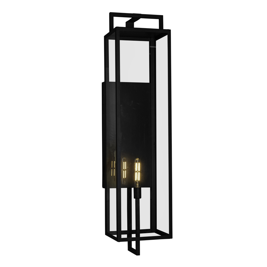 52"H Powder Coat Gunmetal Wall Sconce, medium base socket, direct wired, with Clear Glass Shade, recommend 8 watt Clear T9 LED bulb, Rated UL Wet Location