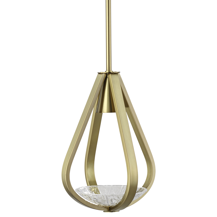 8.5" diameter x 11.5"H Chemetal #912 Satin Bronze Aluminum Pendant, GU10 socket, direct wired, all metal parts have extra clear lacquer coating, with Cracked Acrylic, 24" overall height, recommend 6 watt GU10 MR16 LED bulb