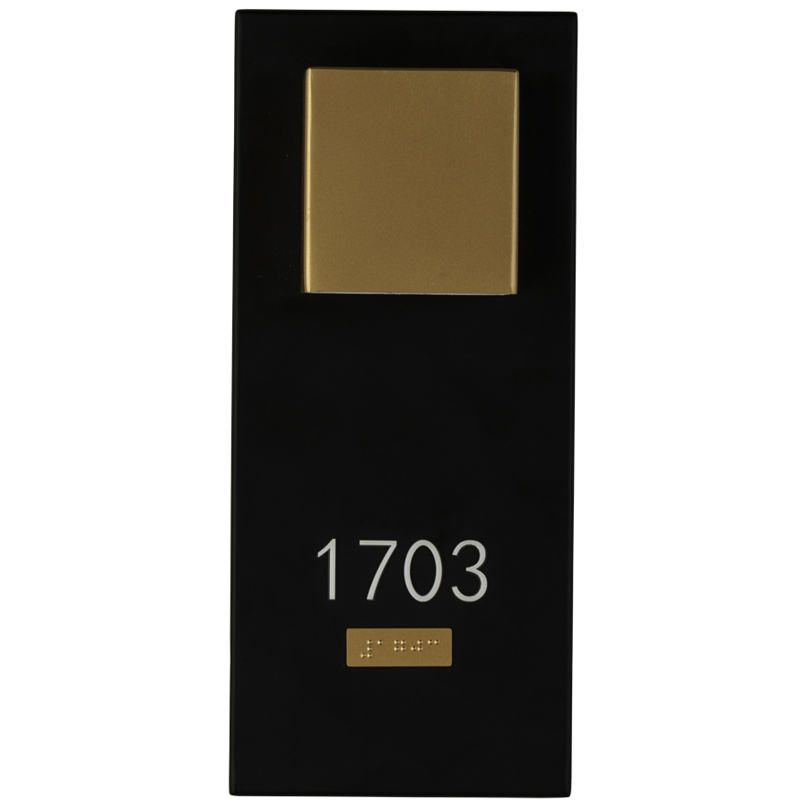 12"H Powder Coat Dark Oxide Black and Medium Bronze Wall Sconce, G9 socket, direct wired, with White Number Signage and ADA Compliant Braille, one 5 watt G9 500 lumen 3000K 80CRI LED bulb included