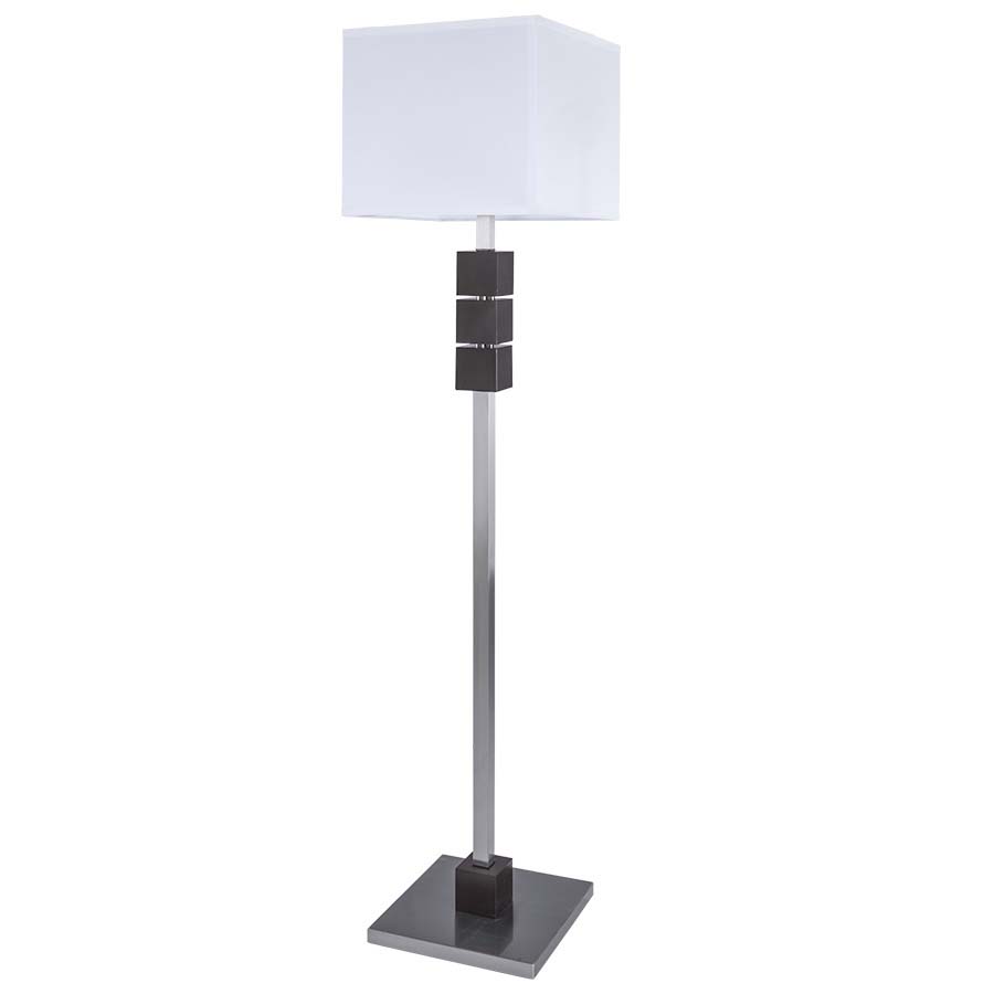 59" Kona Wood/Brushed Nickel Floor Lamp, medium base socket with on/off push thru socket switch, 11' Exposed Silver 45° cord. Includes 14"x14"x14"x14"x12" White Linen Hardback Shade. Recommend 1600 lumen LED bulb.
