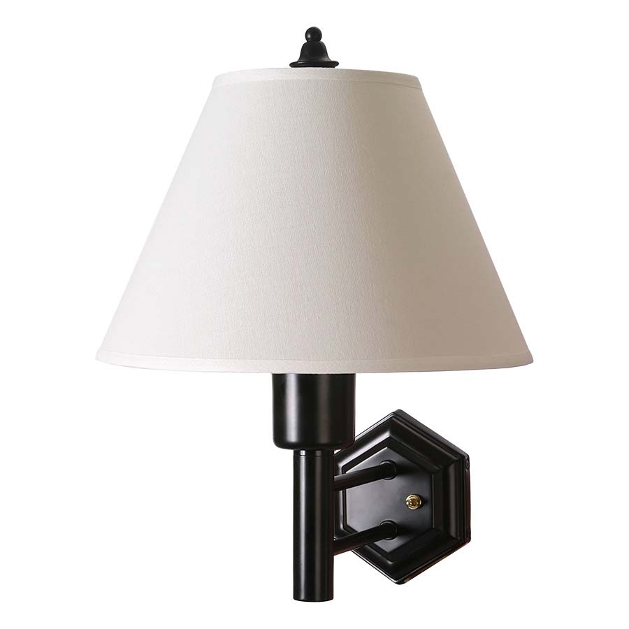 18"H Dark Bronze Single Arm Wall Lamp, medium base socket, push button switch at back plate. 8' Black 45° cord, 24" matching cord cover. 6x13x9" Laura White Hardback Shade. Recommend 1100 lumen LED bulb.