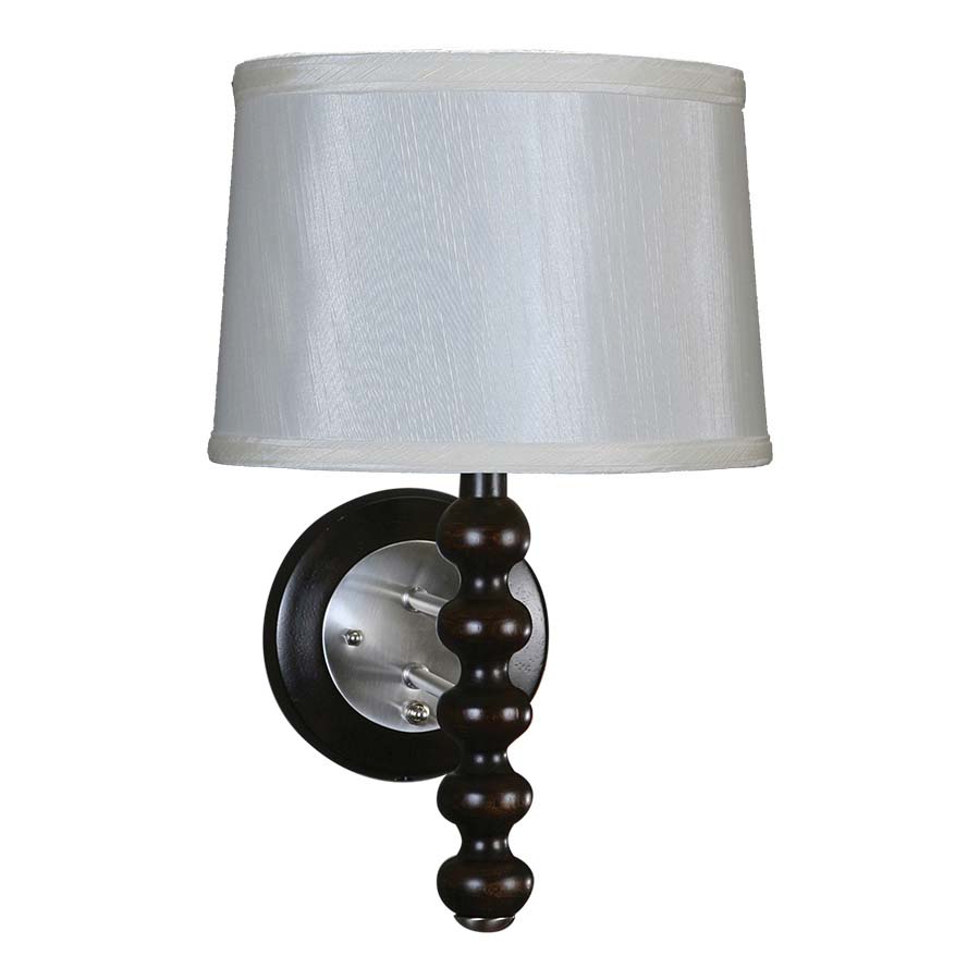 16" Espresso/Brushed Nickel Single Wall Lamp, medium base socket, on/off push button switch at backplate, 8' Silver 45° cord, 24" matching cord cover. Includes 8.5"x9.5"x7" Winter White Hardback Shade, recommend 1100 lumen LED bulb.