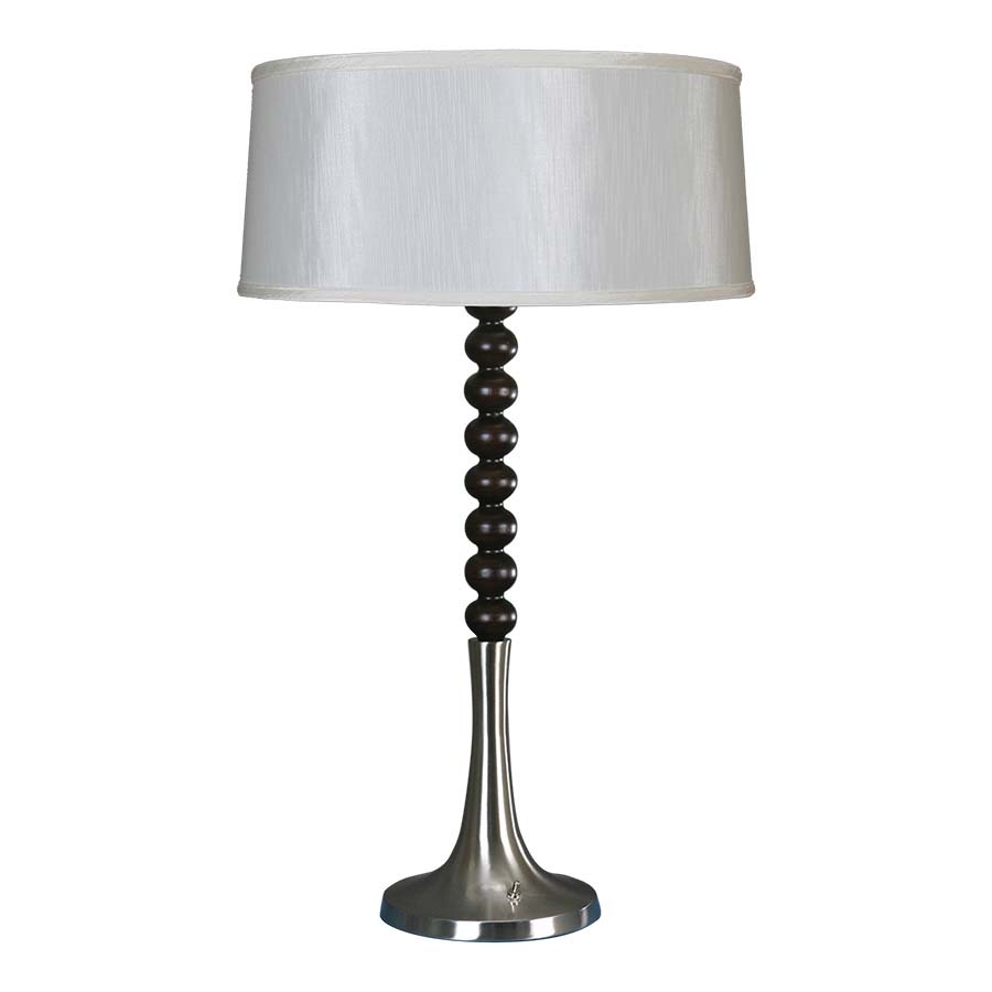 31" Espresso/Brushed Nickel Table Lamp, medium base socket, on/off push button base switch, 8' Black 45°cord, 17"x18"x8" Winter White Hardback Shade. Recommend 1100 lumen LED bulb.