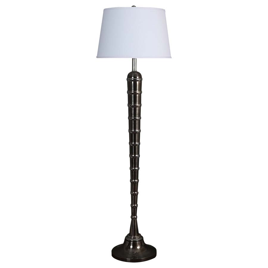 59.25"H Brushed Nickel Floor Lamp, medium base socket with push thru socket switch, 15' Silver 45° cord, 14"x17"x11" Cream Linen Hardback Shade. Recommend 1100 lumen LED bulb.