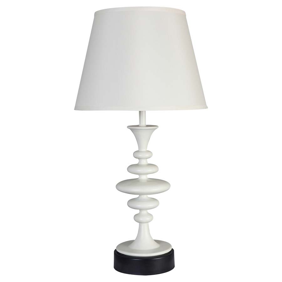 30"H Whipped Cream and Matte Black Table Lamp, medium base socket with on/off push thru socket switch, 8' Silver 45° 3-prong grounded cord, two outlets, 10"x15"x11" Cream Linen Hardback Shade. Recommend 1100 lumen LED bulb. w/9"HP/Fin