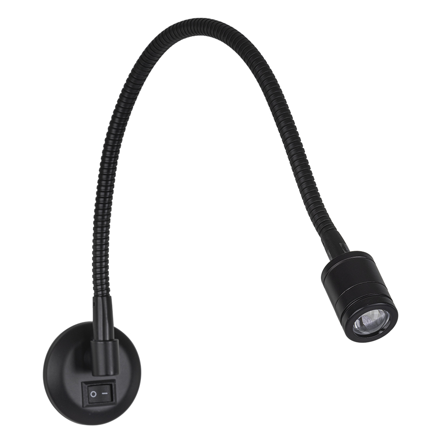 19"H Espresso LED Wall Lamp, with on/off rocker switch. Mounts to a headboard or equivalent. Includes integrated 1 watt LED bulb. 6' cord with required LED driver integrated with the plug.