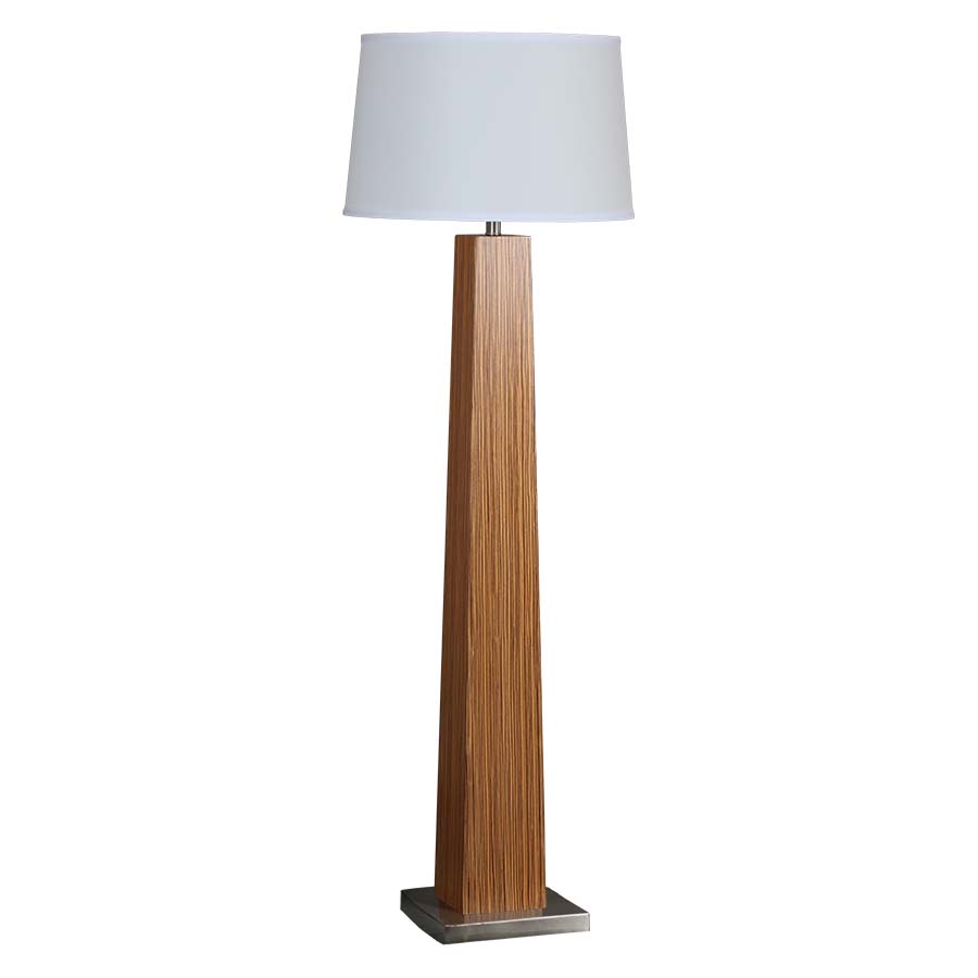 60"H Zebra Wood with Brushed Nickel accents Floor Lamp, medium base socket with push thru socket switch, 12' Silver 45° cord. 17"x19"x12" White Linen Hardback Shade. Recommend 1100 lumen LED bulb.