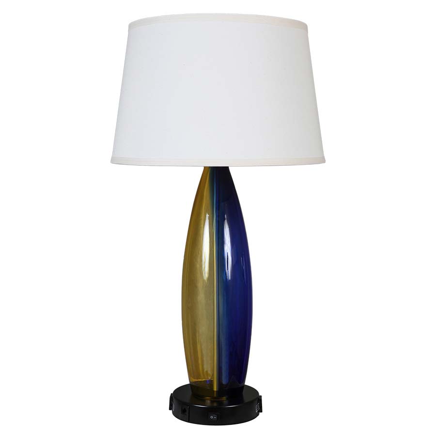 29"H Twilight Glass with matte black accents Table Lamp, medium base socket, on/off rocker base switch, 8' Silver 45° 3-prong grounded cord, two outlets, 13x16x10 Natural Linen HB Shade. Recommend 1100 lumen LED bulb.
