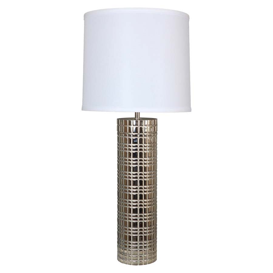 29.75"H Polished Nickel Table Lamp, medium base socket with on-off pull chain socket switch, 8' Silver 45° cord, 12x13x11 White Linen Hardback Shade. Recommend 1100 lumen LED bulb.