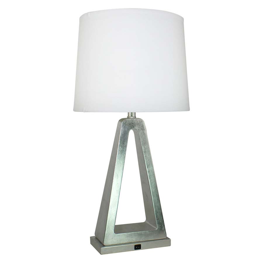 28.25"H Silver Foil Table Lamp, medium base socket, on/off rocker base switch, 8' Silver 45° cord, with 12.5x14x9 Natural Linen Hardback shade. Recommend 1100 lumen LED bulb.