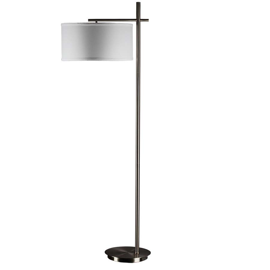62.5"H Brushed Nickel Floor Lamp, medium base socket, on/off rocker switch on column, 8' Silver 45° cord, 16x16x7 Cream Linen Hardback Shade with Rolled Edges. Recommend 1100 lumen LED bulb.