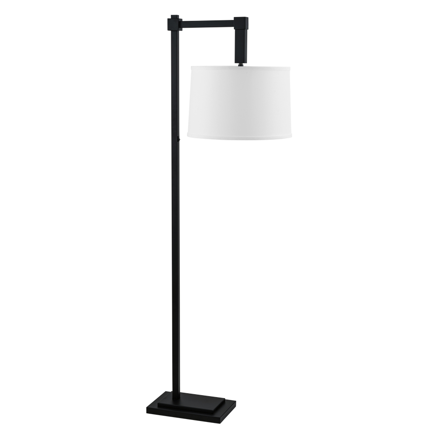 60" Matte Black Floor Lamp, medium base socket, on/off rocker switch on column @ 42"AFF, 12' Silver 45° cord, 14x15x10 White Linen Hardback Shade with 2" drop and small uno ring. Recommend 1100 lumen LED bulb.