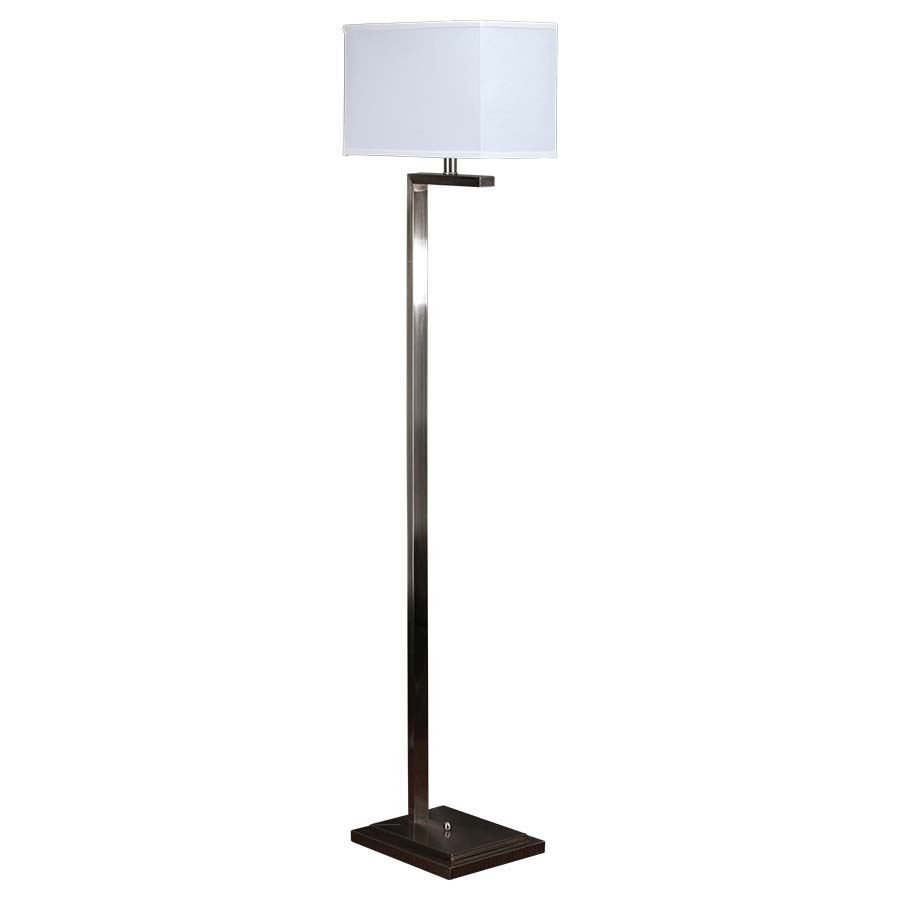 64.5" Brushed Nickel Floor Lamp, medium base socket, on/off push thru socket switch, 11' Silver 45° cord, with 8"x15"x8"x15"x10" Rectangle White Linen Hardback Shade Recommend 1100 lumen LED bulb.