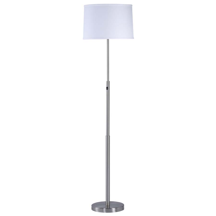 A classic floor lamp is the solution to a dark corner in need of illumination. This brushed nickel floor lamp by Arkansas Lighting features a white linen shade.