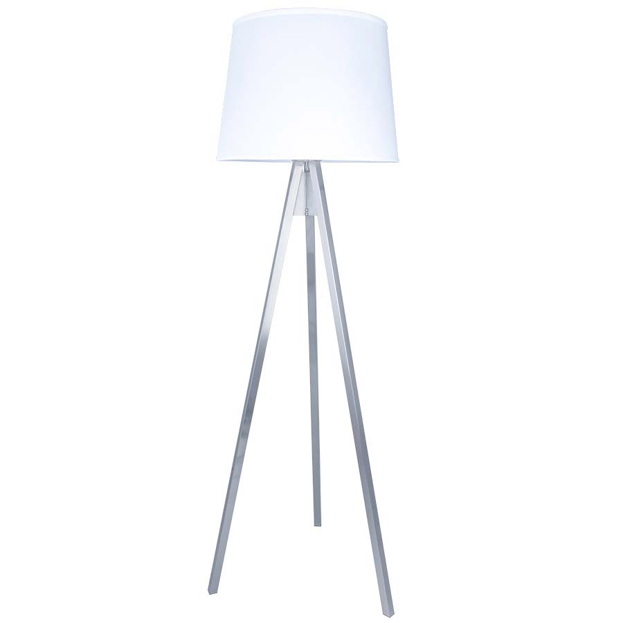 64"H Brushed Nickel Floor Lamp, "S" arm medium base socket, on/off rocker switch at neck, 10' Silver 45° cord, 16x20x14 Linda Parchment Hardback Shade. Ships knocked down. Recommend two 1100 lumen LED bulbs. *clearance item comes with 16x19x12.5 natural linen shade*