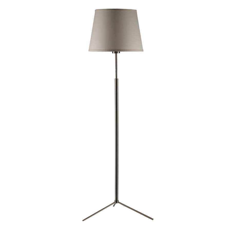 62" Brushed Nickel Floor Lamp, medium base socket, on/off rocker switch at neck, 10' Silver 45° cord, 12x16x12 Linda Parchment HB Shade, recommend 1100 lumen LED bulb; tripod base (Alt. # 6314F)