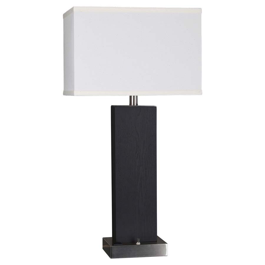 29" Espresso and Brushed Nickel Table Lamp, medium base socket, on/off push button base switch, 8' Silver 45° 2-prong cord, 10x15x10x15x10 Natural Linen Hardback Shade. Recommend 1100 lumen LED bulb.