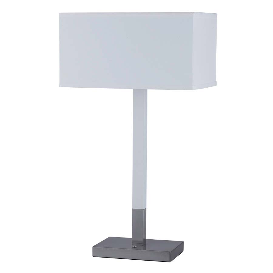 30" Brushed Nickel and Matte White Table Lamp, dual medium base socket, one touch switch, 8' Silver 45° cord, 10x17x10x17x9 Rectangle White Linen Hardback Shade. Recommend two 1100 lumen LED bulbs.