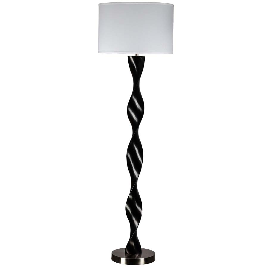 69.5"H Espresso Floor Lamp with Brushed Nickel accents, medium base socket, on/off push thru socket switch, 12' Silver 45° cord, 20x20x13 White Linen Hardback Shade. Recommend 1100 lumen LED bulb.