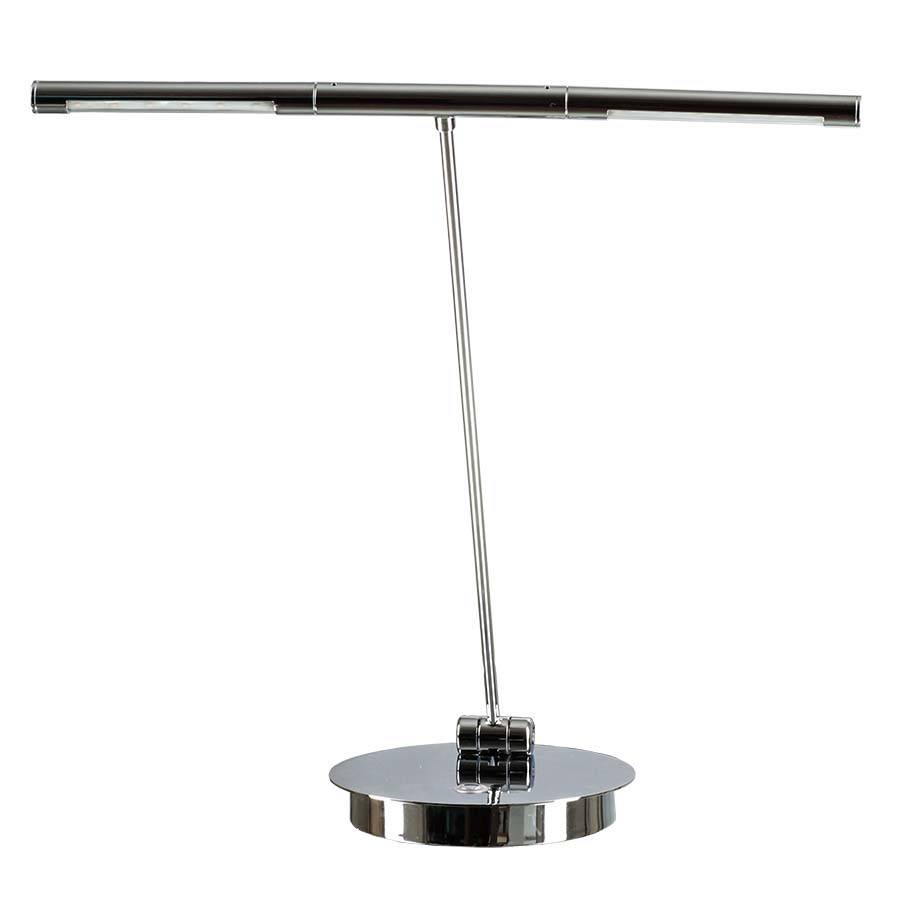 20" Chrome LED Table Lamp with rotating directional arms, twelve 1-watt LEDs (6 for each side), on/off touch switch with blue nightlight when lamp is turned off, 6' DC15V-1A cord with integrated power supply