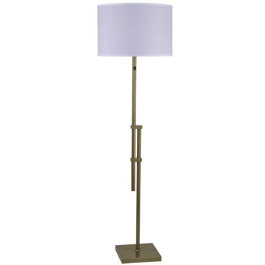 63"H Metallic Gold Parallel Floor Lamp, "S" arm medium base socket, on/off rocker switch on column @ 48"AFF, 11' Silver 45° cord, 18x18x12 White Linen Hardback Shade with bottom acrylic diffuser. Recommend two 1100 lumen LED bulbs.