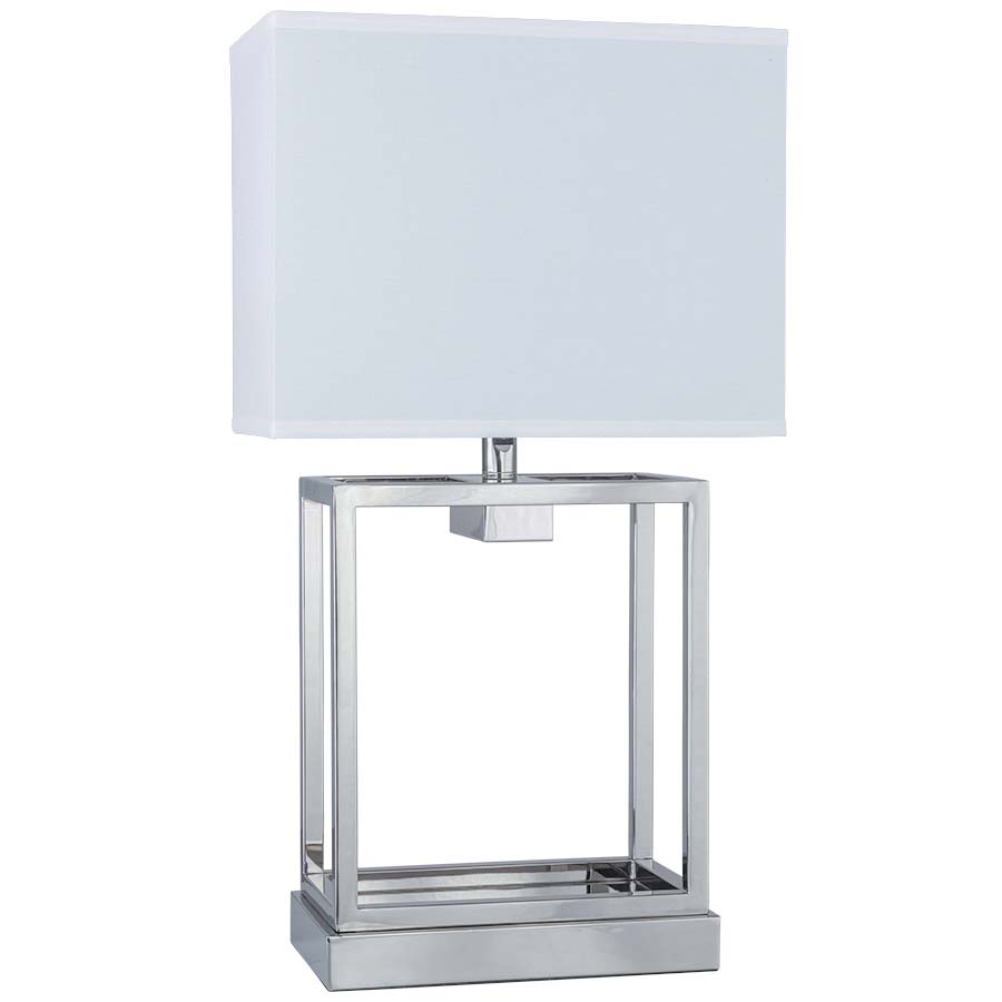 26" Polished Nickel Table Lamp, GU24 socket, on/off rocker switch at neck, 8' Silver 45° Cord, 8x14x8x14x11 Rectangle Cream Linen Hardback Shade. Recommend 1100 lumen LED bulb with GU24 base.