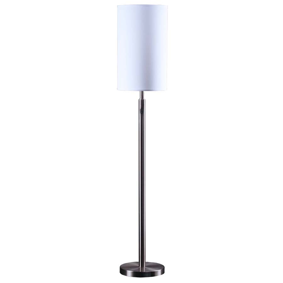 58" Brushed Nickel Floor Lamp, medium base socket, on/off rocker switch on column @ 35.5"AFF, 8' Silver 45° cord. 10.5x10.5x18 White Linen Hardback Shade. Recommend 1600 lumen LED bulb.