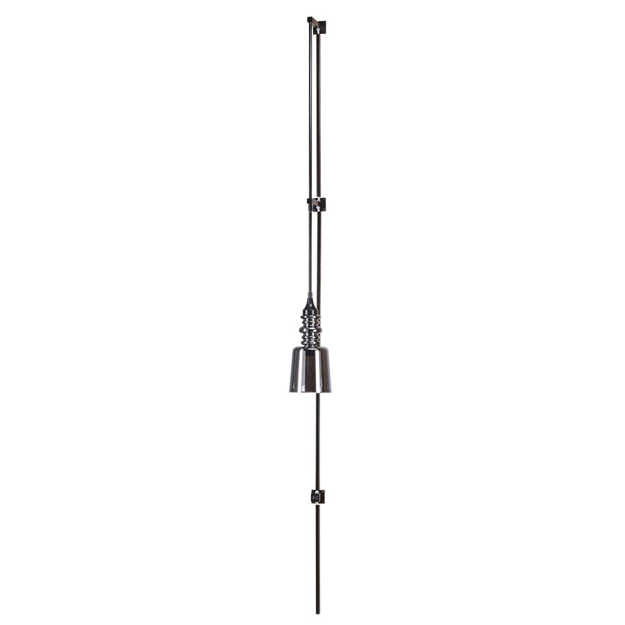 86"H Diplomat Bronze Wall Lamp, medium base socket, on/off rocker switch on back plate, 8' 45° Silver Cord, 86" Matching Cordcover, with Smoke Bronze Translucent Glass Shade. Recommend 1100 lumen LED bulb.