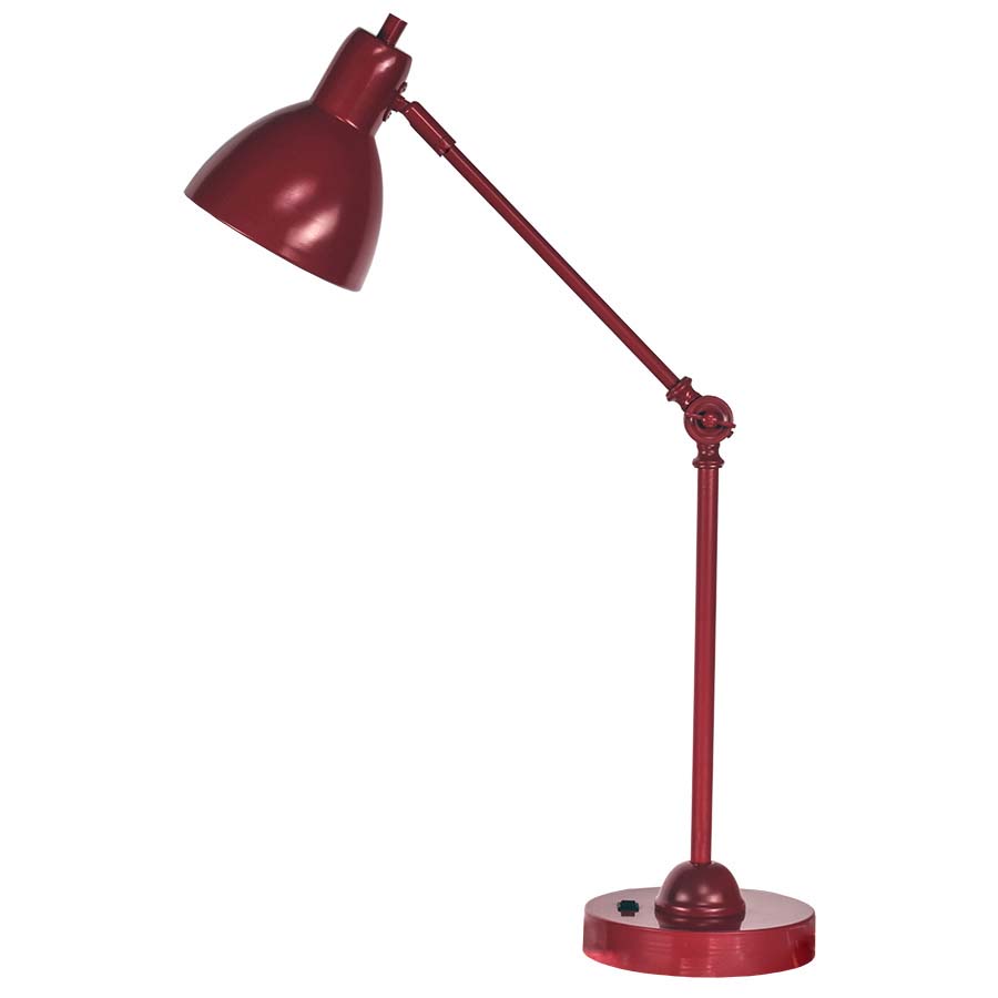 26" Matte Red Adjustable Table Lamp, medium base socket, on/off rocker base switch, 8' Silver 45° cord, with Matte Red Metal Shade. Recommend 800 lumen LED bulb.