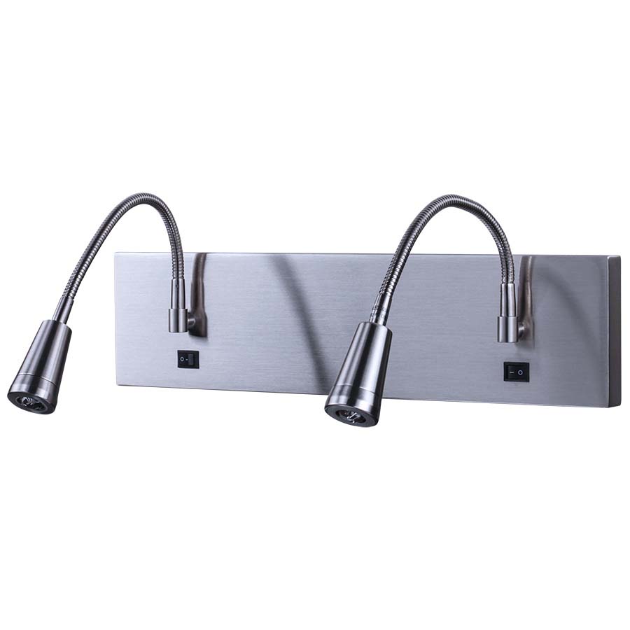 A double wall lamp is just what’s needed for brightening multiple spots at once. This LED task lamp features two adjustable gooseneck lights in brushed nickel.