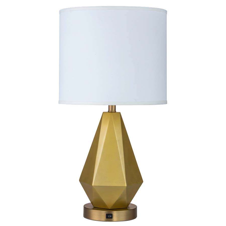 27" Brushed Brass with Glossy Top Coat Column Table Lamp, medium base socket, on/off rocker base switch, 8' Silver 45° cord, 14x14x12 Cream Linen HB Shade with top acrylic diffuser. Recommend 1100 lumenLED bulb.