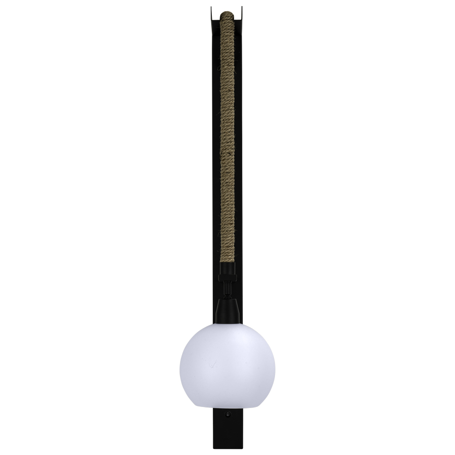 36.75" Matte Black Wall Lamp, with Braided Rope, medium base socket, on/off rocker switch, Direct Wired, with White Frosted Acrylic Globe, Recommend 1100 lumen LED bulb.
