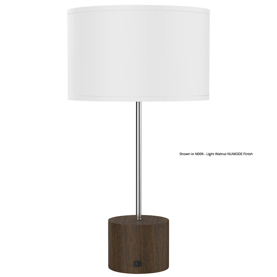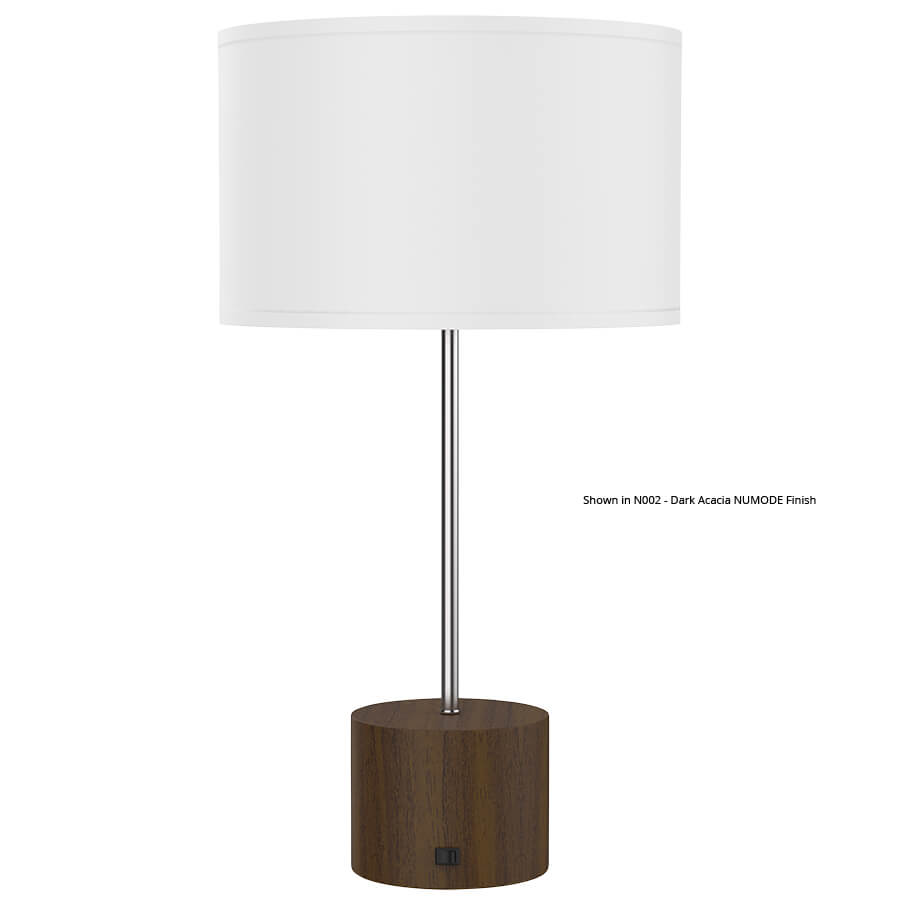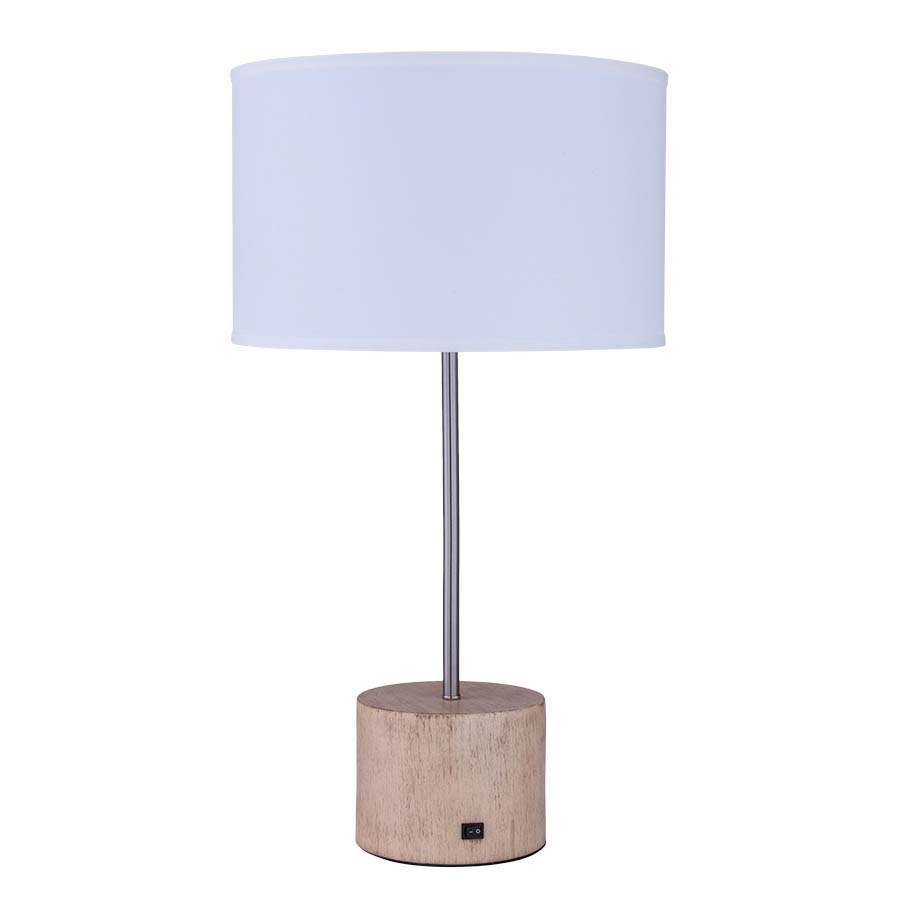 28.5" Brushed Nickel and Painted Oak Metal Table Lamp, medium base socket, on/off rocker base switch, 8' Silver 45° Cord, 8"HP/Finial, 16x16x10 White Linen Hardback Shade. Recommend 1100 lumen LED bulb.