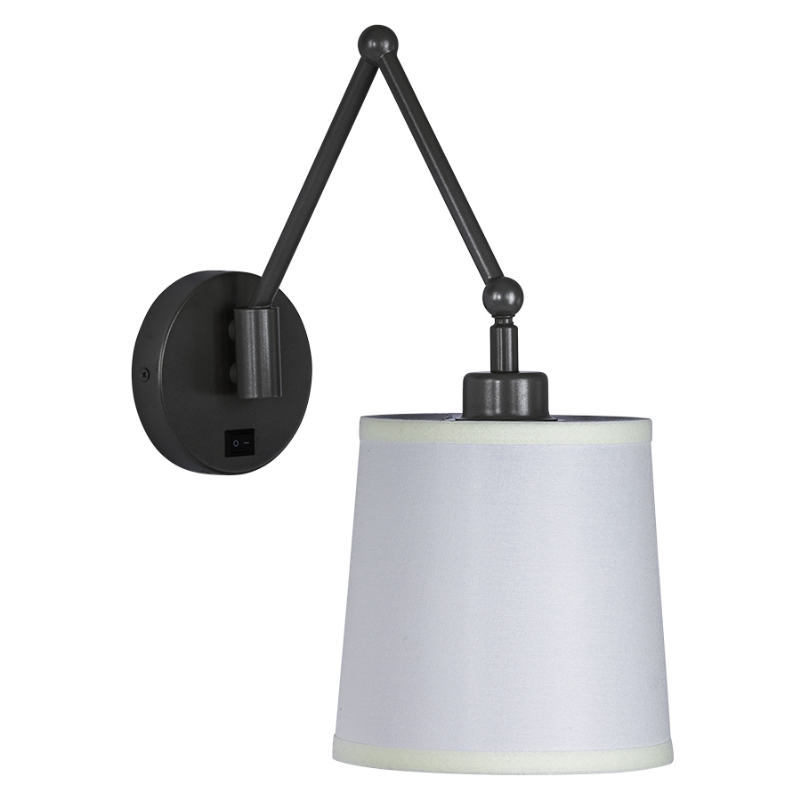 15.25"H Stainless Steel Single Wall Lamp, one GU24 socket, on/off rocker switch, 8' silver 45° cord exits back of lamp, 6"x7"x7" Cream Linen HB Shade, Recommend 1100 lumen LED bulb with GU24 base.