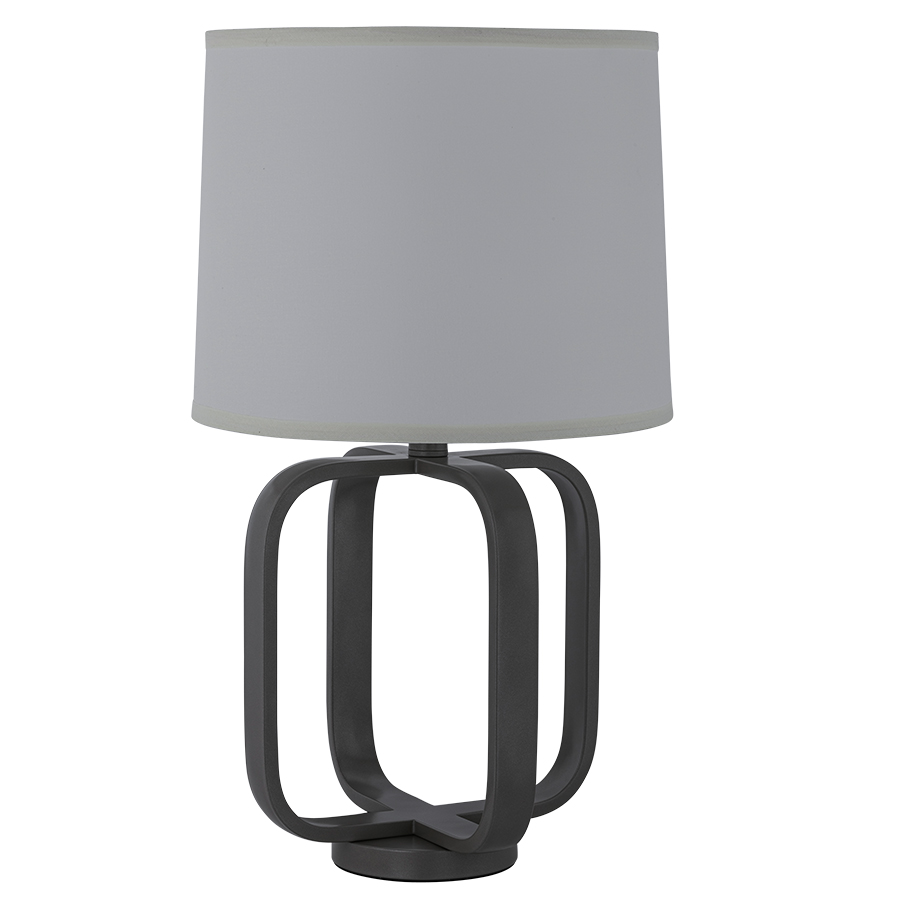26.25"H Stainless Steel Table Lamp, one GU24 socket, on/off rocker switch at neck, 8' silver 45° cord, 14"x15"x12" Cream Linen Hardback Shade, 9.5"Harp & Finial, Recommend 1100 lumen LED bulb with GU24 base.