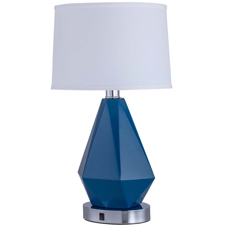 23.5"H Commodore Powder Coated Cast Aluminum Table Lamp with Polished Chrome accents, one medium base socket, on/off rocker base switch, 8' Silver 45° cord, 12x13x9 White Linen HB Shade. Recommend 1100 lumen LED bulb.