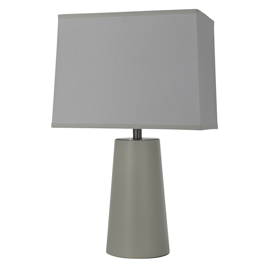 25.5" Monterey White and Brushed Nickel Table Lamp, one GU24 socket, on/off rocker switch at neck, 8' silver cord w/flat plug and 45° offset, (9"x15") x(10"x16") x12" Rectangle Cream Linen hardback shade. Recommend 1100 lumen LED bulb with GU24 base.