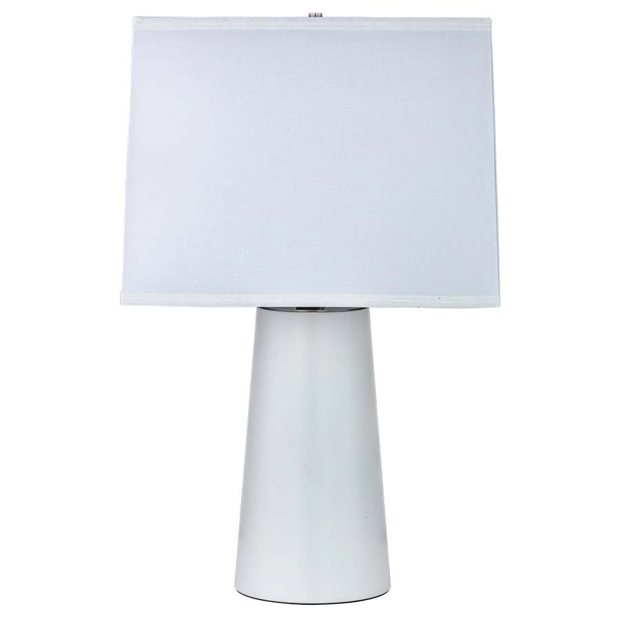 Need modern hotel lighting? Keep guests out of the dark with Arkansas Lighting's sleek, 22.5" table lamp in brushed nickel and a Monterey white finish.
