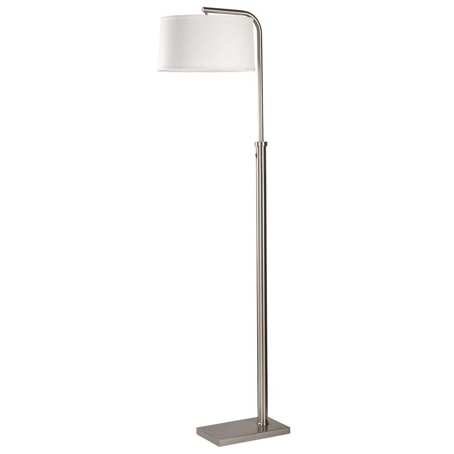 72" BRUSHED NICKEL Floor Lamp, one GU24 socket, on/off rocker switch at column, 8' silver cord w/flat plug and 45° offset, 15x16x8.5 Cream Linen Hardback Shade with single fold trim. Recommend 1100 lumen LED bulb with GU24 base.