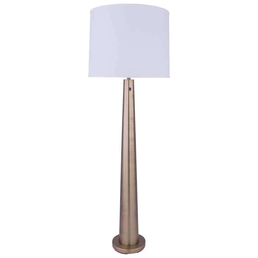 66.75"H Antique Brass Floor Lamp, medium base socket, on/off rocker switch on column at 46"AFF, 11' Silver 45° cord, with 21"x22"x17" White Linen Hardback Shade, recommend 1100 lumen LED bulb