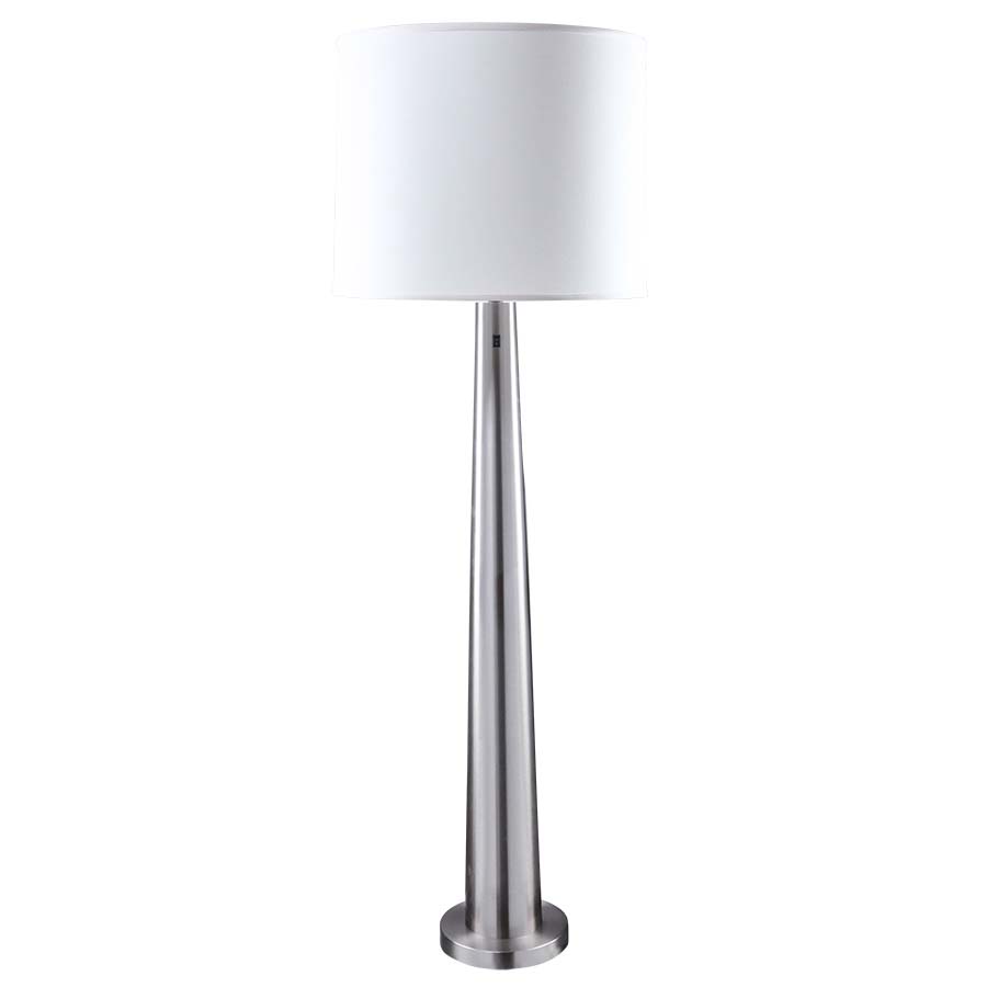 66.75"H Brushed Champagne Floor Lamp, medium base socket, on/off rocker switch on column at 46"AFF, 11' Silver 45° cord, with 21"x22"x17" White Linen Hardback Shade, recommend 1100 lumen LED bulb