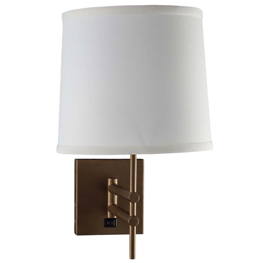 14.5"H Sungold Single Wall Lamp, one GU24 socket, on/off rocker switch, 8' silver cord w/flat plug and 45° offset exits back of lamp, one 8x9x8 Cream Linen HB Shade. Recommend 1100 lumen LED bulb with GU24 base