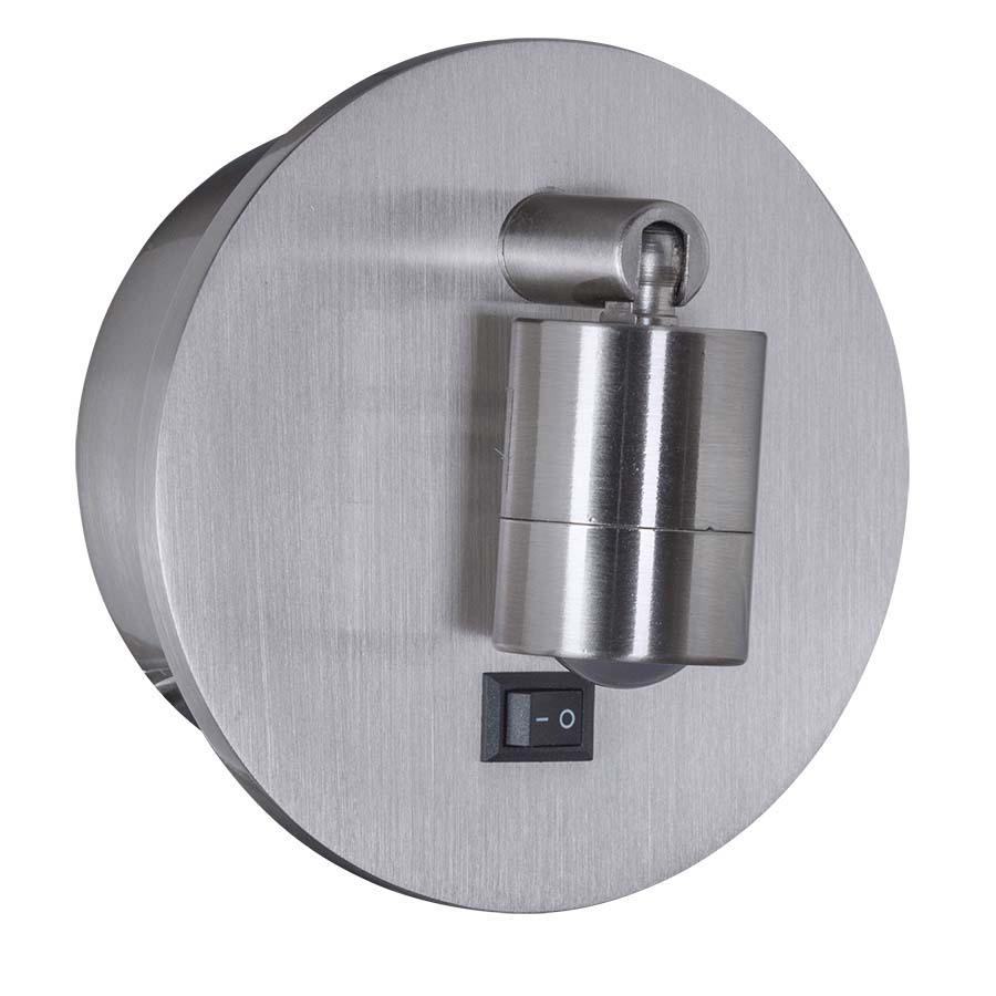 4" Diameter Brushed Nickel Wall Sconce, 1 watt LED, 80 lumens, 3000K, 90 CRI, on/off rocker switch at back plate, 10' Silver 45° cord out back of lamp, with Clear Acrylic Lens