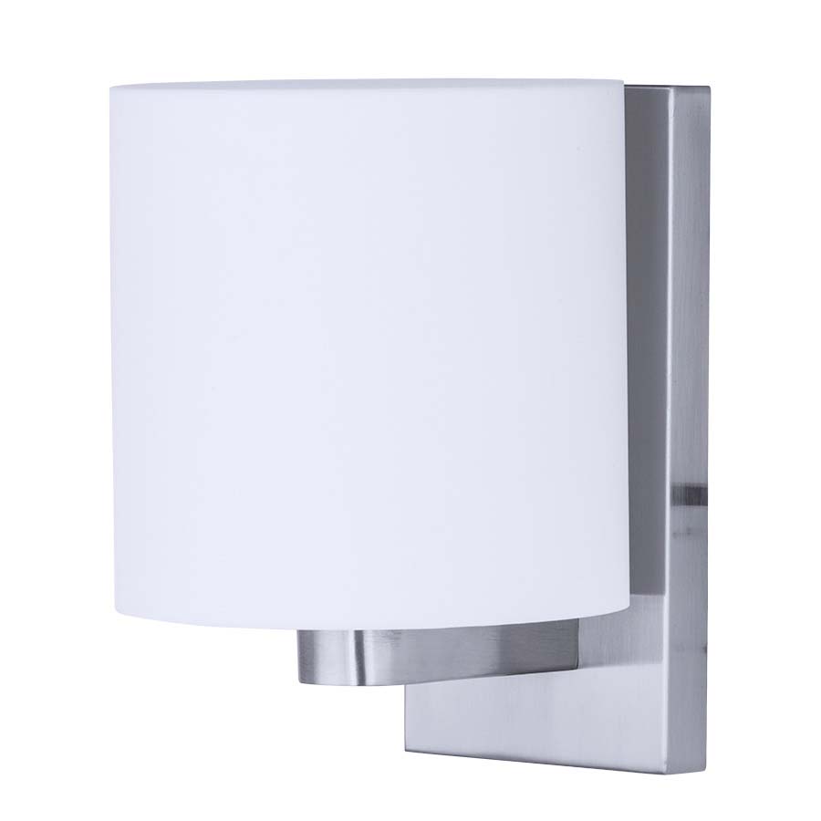 10.75" Brushed Nickel Wall Sconce, GU24 socket, no switch, 10' Silver Cord out back of lamp, with White Frosted Acrylic Diffuser with closed top. Recommend 1600 lumen LED bulb with GU24 base.