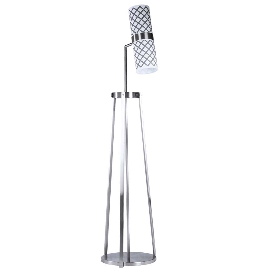 72" Brushed Nickel Floor Lamp, Dual GU24 sockets, dual on/off rocker switch, two convenience outlets, one USB port, 8' Silver 45° 3-prong grounded cord with Printed Pattern Fabric Shade. Recommend two 1100 lumen LED bulbs with GU24 base.