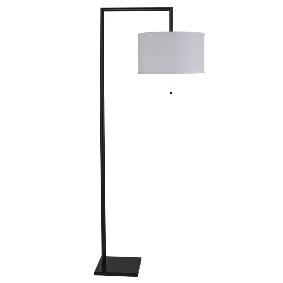 72"H Pottery Bronze Black Floor Lamp, "S" Arm medium base socket with on/off pull chain, 8' Black 45° Cord, 17x17x10 White Linen Hardback Shade. Recommend two 1100 lumen LED bulbs.