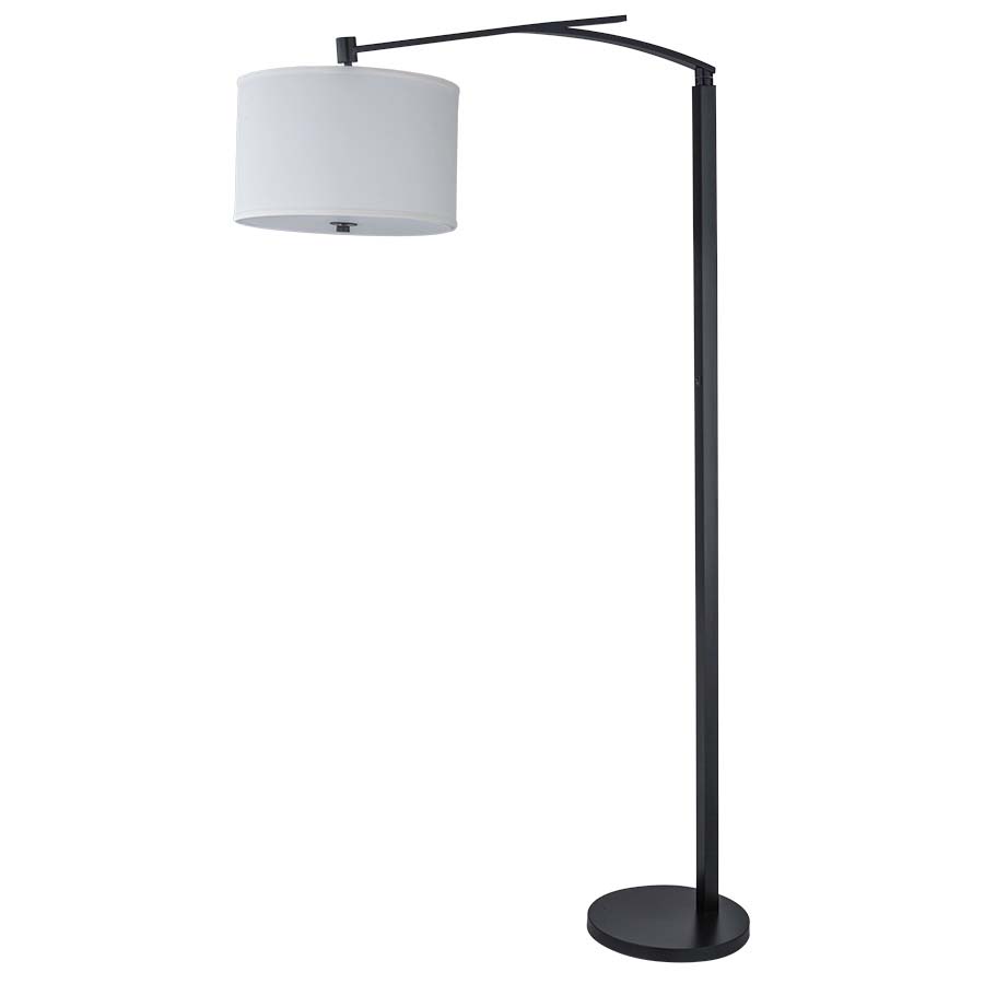 78" Pottery Bronze Floor Lamp, "S" Arm with two medium base sockets, on/off rocker switch on column at 48"AFF, 8' Silver 45° cord, 16x16x10 Cream Linen HB Shade with top and bottom diffusers, recommend 2-1100 lumen LED bulbs. (Ships as knock down)